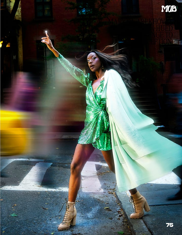 The concept of this photo series is inspired by comments, actions, and experiences that walk the line of being invasive. Moments that won’t make headlines, but will impact how we are on the street. How society pushes around and manipulates perceptions of beauty makes me want to shed my skin like an alien trying to fight its way out of its host. How am I supposed to act in a body that I want to shed? In reaction to all of these frustrations, Kate and I dreamed of a main character who was unabashedly herself and never dimmed herself at the expense of anyone; even as she navigates the mundane.